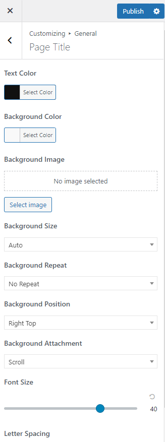 Here, you can configure Text color; Background color; Font Size;..... of page title on your site.