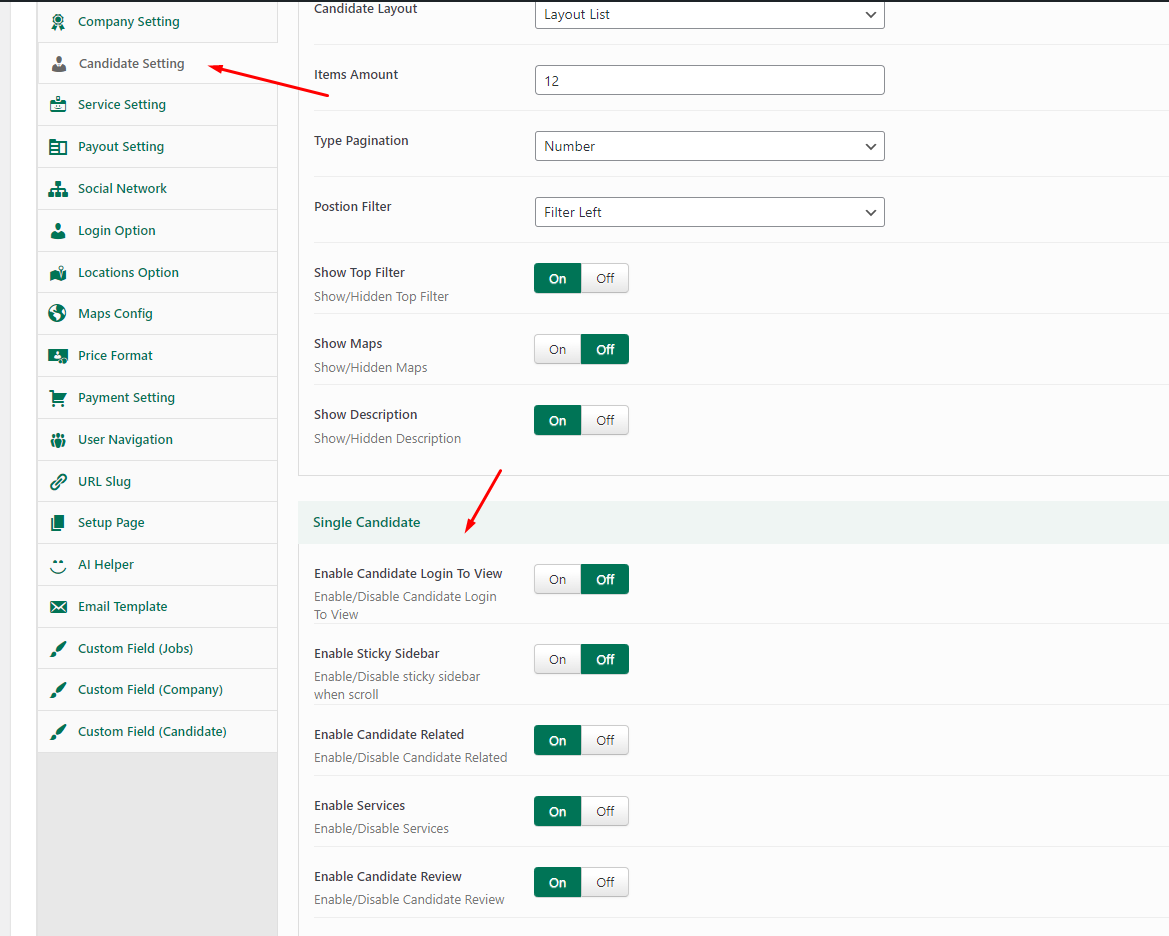 1. Go to **Theme Options -> Candidate Setting -> Single Candidate**