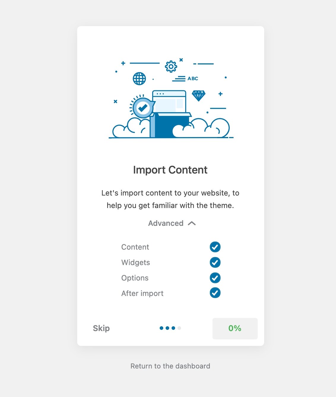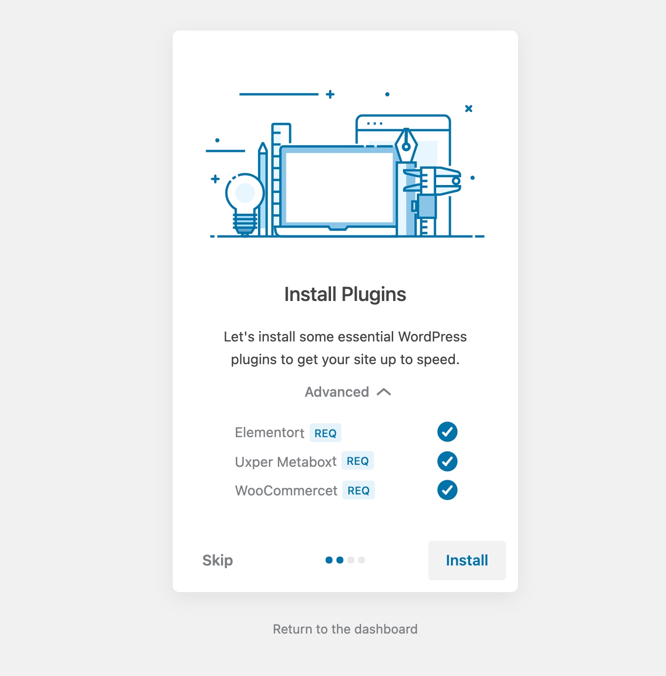 After installing the Lagi theme, you'll continue with the Theme Setup Step to install Plugin, Child-Theme, Demo Data...