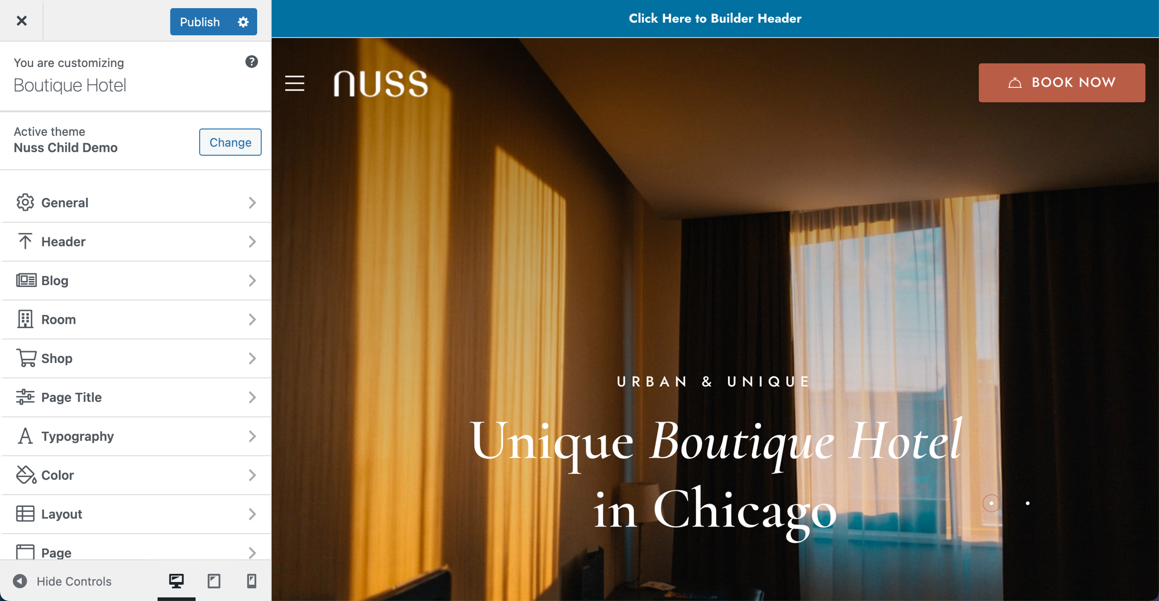 On your site admin panel, please go to Appearance > Customize, where you can customize and personalize your theme layout and styles.
